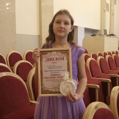 Юная учащаяся МКУДО «Подгоренская ДШИ» Горбенко Александра получила диплом номинанта за исполнение духовного канта «Дева Мария», кроме того, в концерте для участников и зрителей конкурса Александра исполнила песню «Огонек добра» под аккомпанемент преподавателя Резановой Светланы Васильевны.