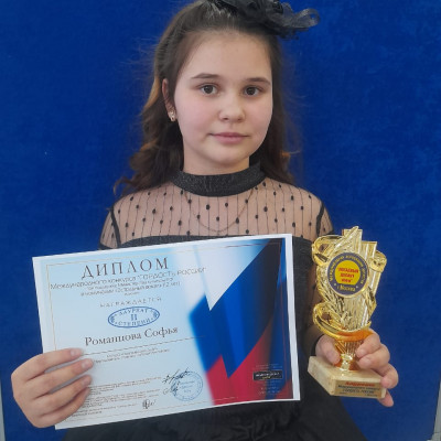В номинации инструментальный жанр (фортепиано) учащаяся Мажарина Александра (13лет) (преподаватель Хорошун Н.В.) за исполнение произведения Г. Свиридова «Романс» к повести А.С. Пушкина «Метель» награждена Дипломом лауреата 2 степени.