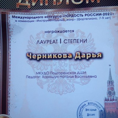 От МКУДО «Подгоренская ДШИ» приняли участие в номинации «Инструментальный жанр» учащиеся 4 класса фортепианного отделения Мажарина Александра и Черникова Дарья, класс преподавателя Хорошун Н.В.