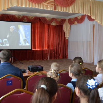 Для проведения мероприятия был использован видеопроектор, который был приобретен в рамках Национального проекта «Культура». Зрители наслаждались просмотром мероприятия в удобных креслах в актовом зале, которые тоже были приобретены, благодаря национальному проекту «Культура».