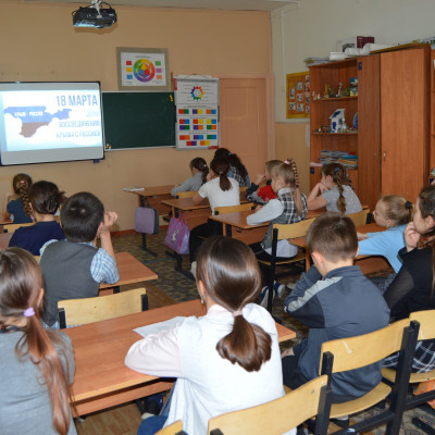 В МКУДО «Подгоренская ДШИ» прошло внеклассное мероприятие, посвященное Дню присоединения Крыма к России. На познавательно – информационном часе «Крымская весна» учащиесяузнали интересные факты о полуострове, о достопримечательностях Крыма, о военных страницах истории. Присутствующие познакомились с современной историей Крыма и важнейшим событием – вхождение полуострова в состав России.Мероприятие сопровождалось показом видео презентации «Крымская весна». По окончании мероприятия была проведена викторина, состоящая из познавательных вопросов, где учащиеся выбирали правильный вариант ответа и проверяли свои знания.