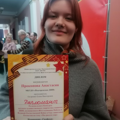 29 марта 2025 г. состоялся Региональный конкурс Детского художественного творчества учащихся ДШИ, посвященный 80-й годовщине Победы в Великой Отечественной войне и Году Защитника Отечества на тему «Мы рисуем мир». Учащиеся художественного отделения МКУДО «Подгоренская ДШИ» Прокопова Анастасия и Никифорова Елизавета приняли участие в этом конкурсе и стали дипломантами.