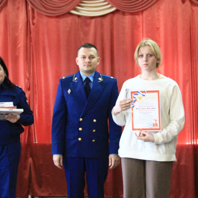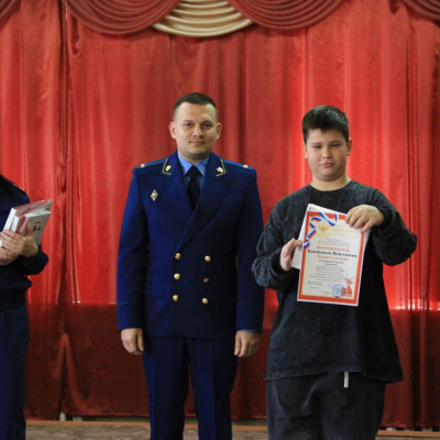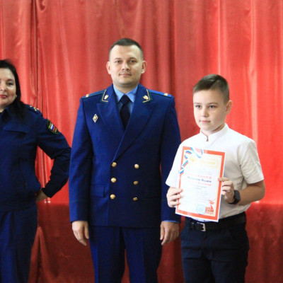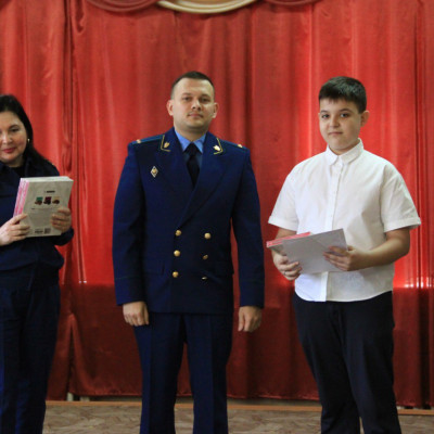 Вручили сладкие призы и дипломы Победителей конкурса представители прокуратуры: прокурор Подгоренского района Воронежской области Александр Иванович Чертов, помощник прокурора - Шафоростова Елена Владимировна.
