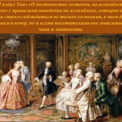 25 ноября 1718 года Петр I издал Указ об ассамблеях.