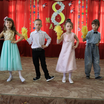 Преподаватели совместно с детьми представили праздничный концерт «С праздником весенним!», в котором ребята почувствовали себя настоящими артистами. В их исполнении прозвучали песни, танцы, стихи, посвящённые мамам и бабушкам, а также совместно участвовали в веселых играх. В концертной программе принимали участие и первоклассники школы искусств фортепианного отделния и отделения народных инструментов. Они исполнили для гостей небольшие инструментальные пьески. В конце праздника мальчики и девочки подарили женщинам цветы мимозы, сделанные своими руками.