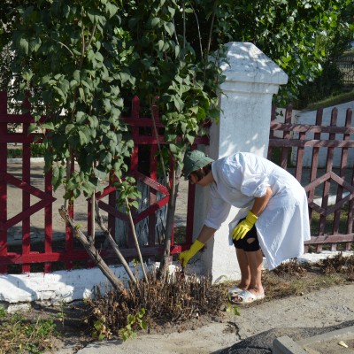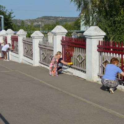 В преддверии нового учебного года в Детской школе искусств состоялся субботник по благоустройству территории. Сотрудники ДШИ скосили траву, а преподаватели покрасили забор.