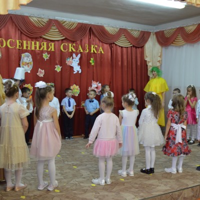 В последний месяц осени – 1 ноября - самые юные учащиеся Детской школы искусств отделения раннего эстетического развития совершили путешествие в осеннюю сказку. В этот день красиво украшенный зал и тёплая обстановка создали праздничное настроение не только у ребят, но и зрителей. А в вестибюле школы родителям была представлена выставка осенних детских работ.Дети вместе с Ведущей отправились в осенний сказочный лес, в котором повстречали красавицу Осень, весёлого Снеговичка и витаминную Морковку. Юные артисты водили хороводы, пели песни про осень, танцевали, играли на музыкальных инструментах, читали стихи, отгадывали загадки и принимали активное участие в подвижных играх, конкурсах. Родители вместе с детьми с интересом приняли участие в «Игре с гостями». Зрители с радостью смотрели на выступающих и горячо аплодировали. В завершении праздника добрая Осень угостила всех вкусными яблочками. Все присутствующие получили положительные эмоции, хорошее настроение, т.к. этот праздник помог детям не только отлично отдохнуть и повеселиться, но и закрепить представления об осени.