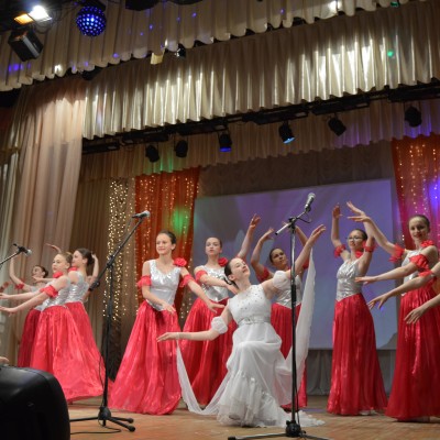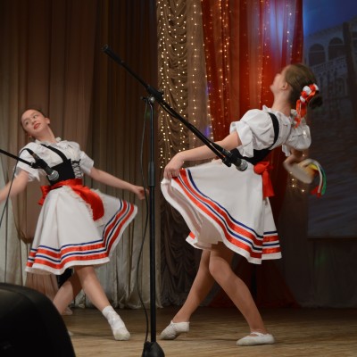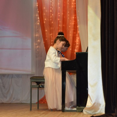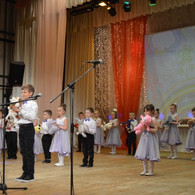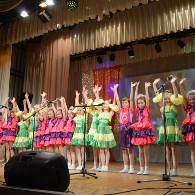 Выставка творческих работ учащихся художественного отделения ярко и разносторонне отразила мир искусства. В концертной программе приняли участие учащиеся всех отделений школы. Были представлены вокальные, инструментальные, хореографические разнохарактерные номера. Ярким и запоминающимся было открытие вечера. Ведущие концерта эмоционально и воодушевленно представляли каждый концертный номер. Инструментальные номера на баяне, фортепиано, гитаре звучали в исполнении как сольных исполнителей, так и ансамблей: преподаватель – учащийся. Такое творческое содружество – это интересное и познавательное общение, прекрасный образец для подражания. Каждый вокальный номер был исполнен как маленькое театральное представление. Вокалистам помогали учащиеся хореографического отделения в музыкально-хореографических композициях. Творческие коллективы ДШИ «Капельки», «Акварель», Веснушка», «Веселая капель», «Грация», «Соловушка» продемонстрировали зрителям свое мастерство. На творческом вечере принимали участие и самые маленькие воспитанники ДШИ – учащиеся отделения раннего эстетического развития, которые представили танец «Игрушки и дети».