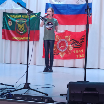 Открыл концерт вокальный ансамбль структурного подразделения села Белогорье Подгоренской ДШИ (преподаватель Мажарцева Е.В.) песней «Защитники России». В исполнении фортепианного ансамбля в составе Дудиной Марии и Клименко Ольги прозвучал отрывок из оперы «Иван Сусанин» М.И. Глинки «Славься!». Ляшенко Павел представил зрителям произведение современного композитора «Адажио». Арина Кривобокова подарила зрителям песню «Родина – Мать». Финальная песня «Своих не бросаем» прозвучала в исполнении вокального ансамбля.